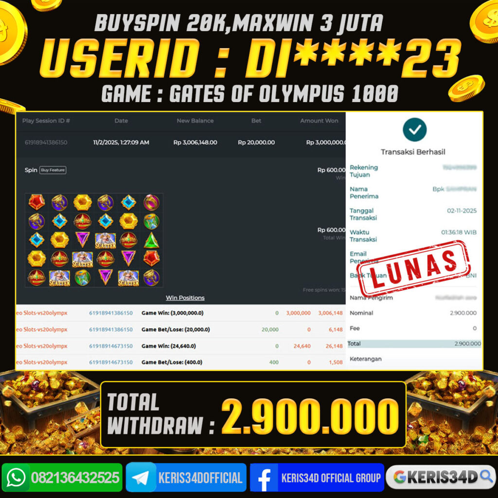 KERIS34D dikenal sebagai situs terpercaya yang selalu menghadirkan pengalaman bermain slot online yang aman, fair, dan berlisensi resmi. Di sini, kami tidak hanya sekadar memberikan janji, tapi bukti nyata berupa slip kemenangan yang dapat Anda lihat secara langsung.