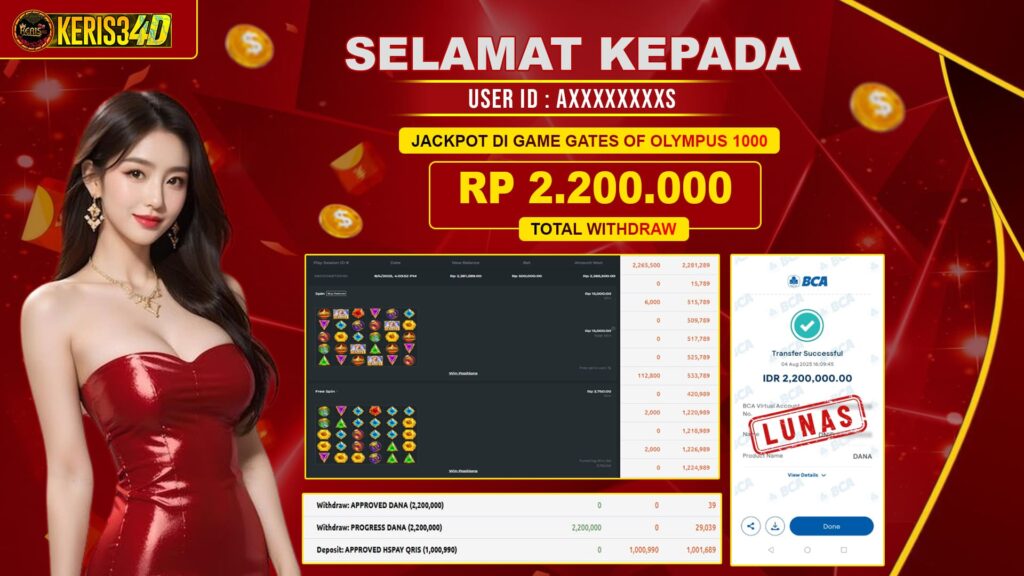 Setiap hari, member KERIS34D berhasil meraih jackpot besar dari berbagai provider slot ternama yang kami sediakan, seperti Pragmatic Play, Habanero, PG Soft, dan masih banyak lagi. Kami secara rutin menampilkan bukti screenshot atau rekapan kemenangan yang berhasil diraih, mulai dari kemenangan ratusan ribu hingga puluhan juta rupiah. Semua slip kemenangan ini kami hadirkan untuk membuktikan bahwa di KERIS34D, peluang menang itu nyata