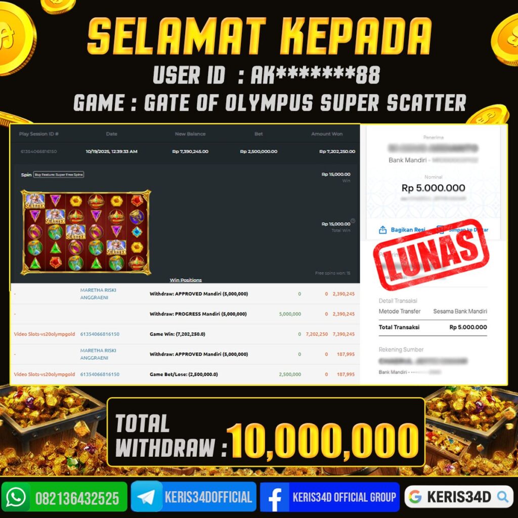 JACKPOT SLOT GACOR GATES OF OLYMPUS SUPER SCATTER 19 OKTOBER 2025, Jackpot Slot Gacor, Kemenangan Slot, Bukti Kemenangan Slot, Kemenangan PRAGMATIC PLAY, Menang Slot online, Slot Gacor, Situs Aman Terpercaya, WD Berapapun Pasti DI Bayar Tuntas, Maxwin Slot Online.