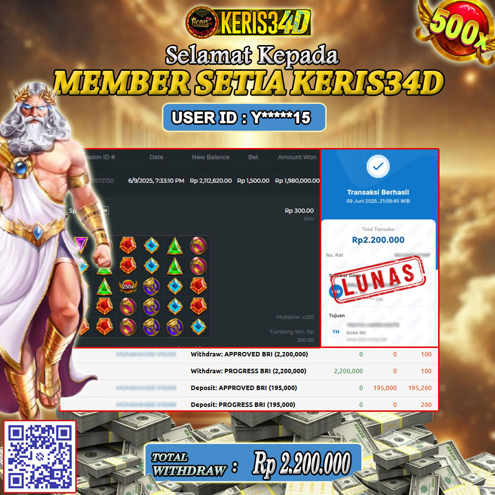 KERIS34D dikenal sebagai situs terpercaya yang selalu menghadirkan pengalaman bermain slot online yang aman, fair, dan berlisensi resmi. Di sini, kami tidak hanya sekadar memberikan janji, tapi bukti nyata berupa slip kemenangan yang dapat Anda lihat secara langsung.