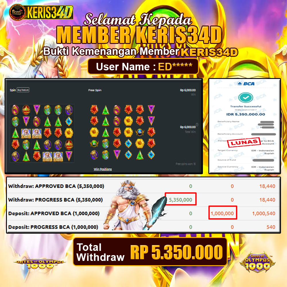 SSetiap hari, member KERIS34D berhasil meraih jackpot besar dari berbagai provider slot ternama yang kami sediakan, seperti Pragmatic Play, Habanero, PG Soft, dan masih banyak lagi. Kami secara rutin menampilkan bukti screenshot atau rekapan kemenangan yang berhasil diraih, mulai dari kemenangan ratusan ribu hingga puluhan juta rupiah. Semua slip kemenangan ini kami hadirkan untuk membuktikan bahwa di KERIS34D, peluang menang itu nyata
