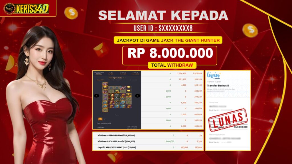 Setiap hari, member KERIS34D berhasil meraih jackpot besar dari berbagai provider slot ternama yang kami sediakan, seperti Pragmatic Play, Habanero, PG Soft, dan masih banyak lagi. Kami secara rutin menampilkan bukti screenshot atau rekapan kemenangan yang berhasil diraih, mulai dari kemenangan ratusan ribu hingga puluhan juta rupiah. Semua slip kemenangan ini kami hadirkan untuk membuktikan bahwa di KERIS34D, peluang menang itu nyata