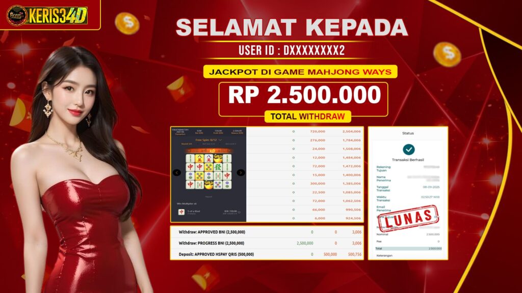Setiap hari, member KERIS34D berhasil meraih jackpot besar dari berbagai provider slot ternama yang kami sediakan, seperti Pragmatic Play, Habanero, PG Soft, dan masih banyak lagi. Kami secara rutin menampilkan bukti screenshot atau rekapan kemenangan yang berhasil diraih, mulai dari kemenangan ratusan ribu hingga puluhan juta rupiah. Semua slip kemenangan ini kami hadirkan untuk membuktikan bahwa di KERIS34D, peluang menang itu nyata