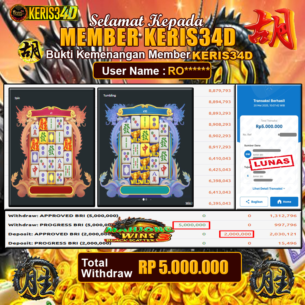 JACKPOT SLOT GACOR MAIN MAHJONG WINS 3 – BLACK SCATTER 20 MEI 2025, Jackpot Slot Gacor, Kemenangan Slot, Bukti Kemenangan Slot, Kemenangan PRAGMATIC PLAY, Menang Slot online, Slot Gacor, Situs Aman Terpercaya, WD Berapapun Pasti DI Bayar Tuntas, Maxwin Slot Online.