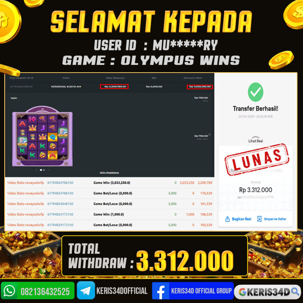 JACKPOT SLOT GACOR MAIN OLYMPUS WINS 30 OKTOBER 2025