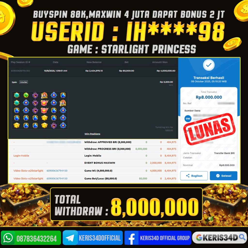 JACKPOT SLOT GACOR MAIN STARLIGHT PRINCESS 1000 08 OKTOBER 2025
