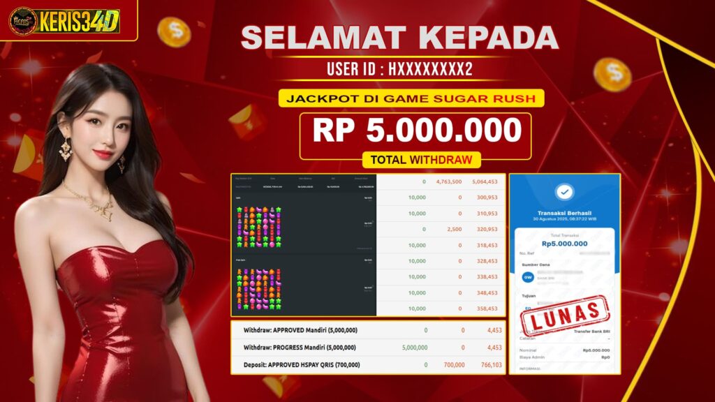 Setiap hari, member KERIS34D berhasil meraih jackpot besar dari berbagai provider slot ternama yang kami sediakan, seperti Pragmatic Play, Habanero, PG Soft, dan masih banyak lagi. Kami secara rutin menampilkan bukti screenshot atau rekapan kemenangan yang berhasil diraih, mulai dari kemenangan ratusan ribu hingga puluhan juta rupiah. Semua slip kemenangan ini kami hadirkan untuk membuktikan bahwa di KERIS34D, peluang menang itu nyata