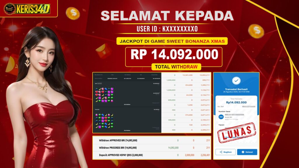 Setiap hari, member KERIS34D berhasil meraih jackpot besar dari berbagai provider slot ternama yang kami sediakan, seperti Pragmatic Play, Habanero, PG Soft, dan masih banyak lagi. Kami secara rutin menampilkan bukti screenshot atau rekapan kemenangan yang berhasil diraih, mulai dari kemenangan ratusan ribu hingga puluhan juta rupiah. Semua slip kemenangan ini kami hadirkan untuk membuktikan bahwa di KERIS34D, peluang menang itu nyata